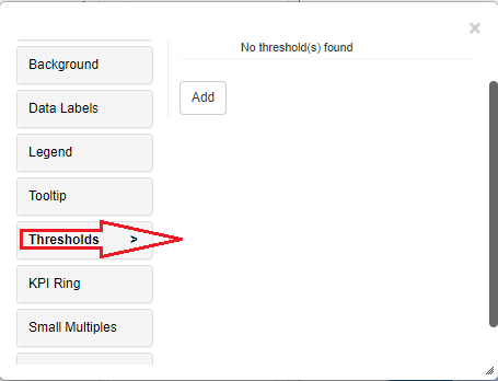 In the business point of view, certain part of the chart needs to be highlighted to draw more attention from the desicion makers. For example, highlight the stores where total sales is greater than a specific value or highlight the top 10 products whose sales is high during last year’s winter. Thresholds are very useful objects in these use cases.